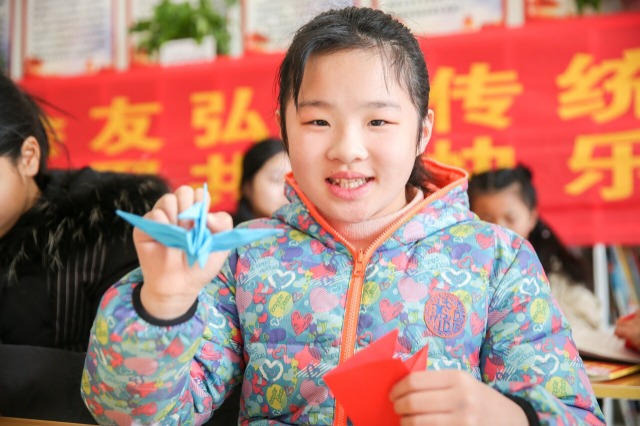 小朋友在展示手工折纸。通讯员 徐慧 摄