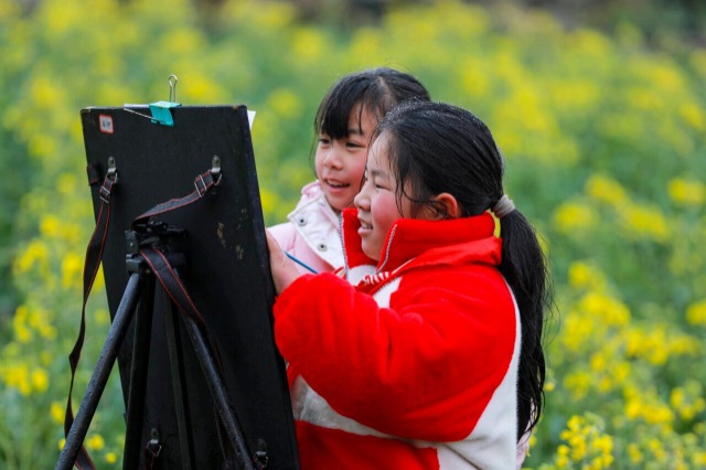2月15日,贵州省黔西市五里布依族苗族乡箐头小学开展“户外写生 描绘春天”主题活动,小学生们在美术老师的带领下走进校园农耕试验基地,用手中画笔描绘美丽春色,亲近自然,感受大好春光。(通讯员 周训超 摄)