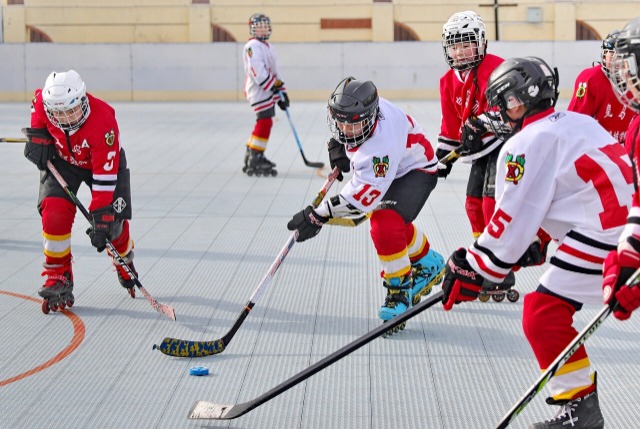 2月14日,在河北省秦皇岛市海港区逸城学校,学生正在练习旱地冰球。近年来,秦皇岛市海港区积极探索体教融合实践,通过聚焦校园足球发展、普及推广校园冰雪运动、推动体育特色传统校建设等方式,并结合实际情况持续加大体教融合投入,改善部分学校体育教学设施,聘请体育专业人员服务学校体育教学、训练和竞赛等活动,多渠道增加体育投入,推动学生文化学习和体育锻炼协调发展、促进青少年健康成长。(通讯员 曹建雄 摄)