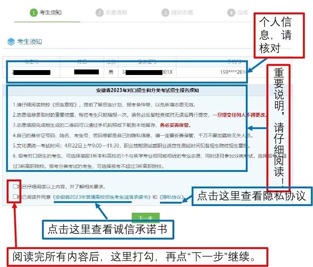 2.考生本人的考生号、身份证号、志愿、手机验证码均为自己隐私信息,切勿泄露;