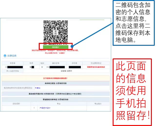 3.一部手机用于接收验证码,手机号码为报名时填报的“联系电话”。手机能够拍照,用于拍照留存填报成功后生成的二维码和志愿信息。