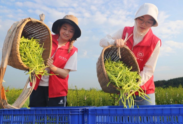 随着一年一度的暑假来临,各地高校又开启了大学生暑期“三下乡”社会实践服务活动,南华大学衡阳医学院暑期“三下乡”社会实践服务团的志愿者们走进湖南省衡阳市祁东县黄土铺镇的田间地头,帮助当地百姓采摘、晾晒黄花菜,用劳动和汗水助力当地的乡村振兴工作。(中国教育报-中国教育新闻网 通讯员 曹正平 摄)