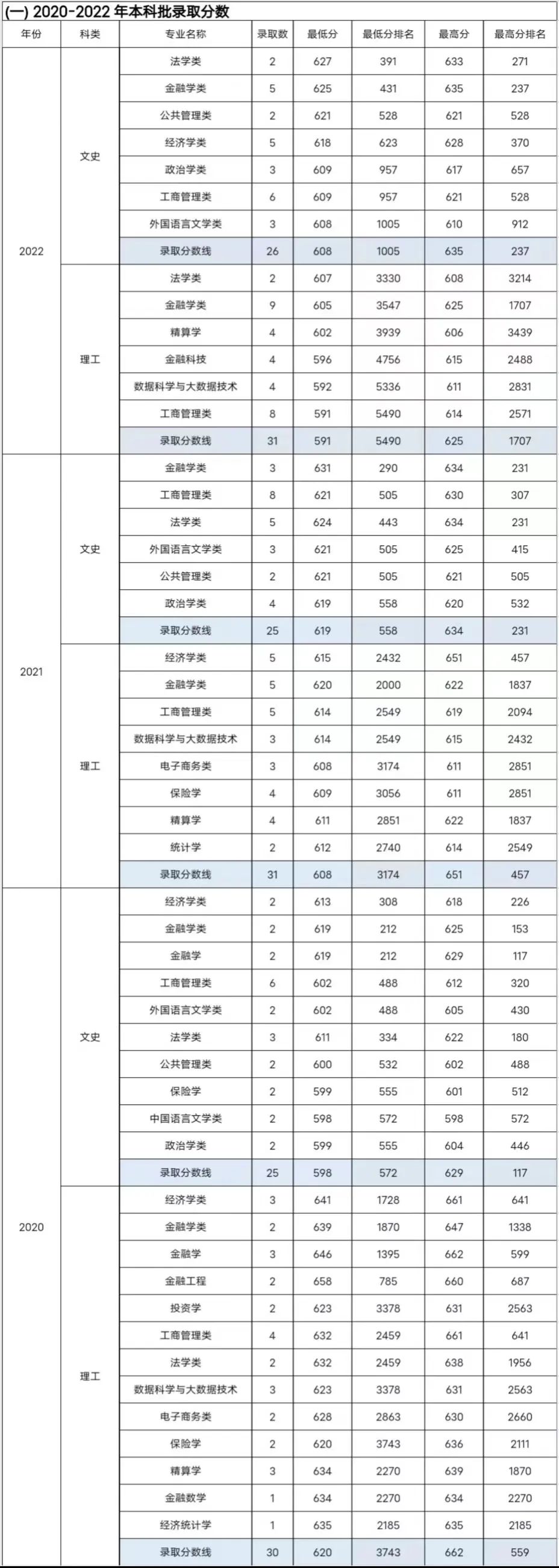 2020-2022年广西录取分数