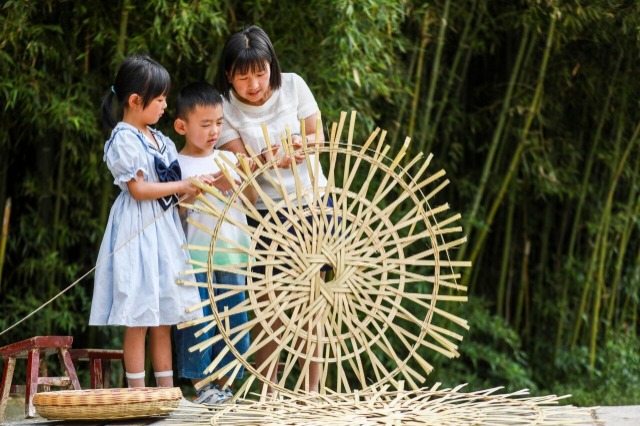 暑假期间,贵州省毕节市纳雍县维新镇朝阳社区,为了丰富孩子们暑期文化生活,利用社区新时代文明实践站,邀请竹编手工艺人,引导孩子们学习竹编技艺,感受传统非遗文化魅力。中国教育报-中国教育新闻网通讯员 周训超 摄